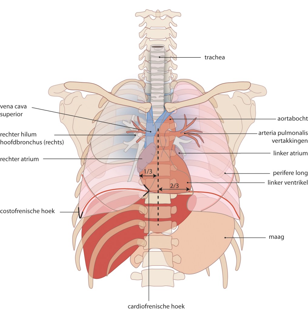 - Superior border: Both atria and the large blood vessels.