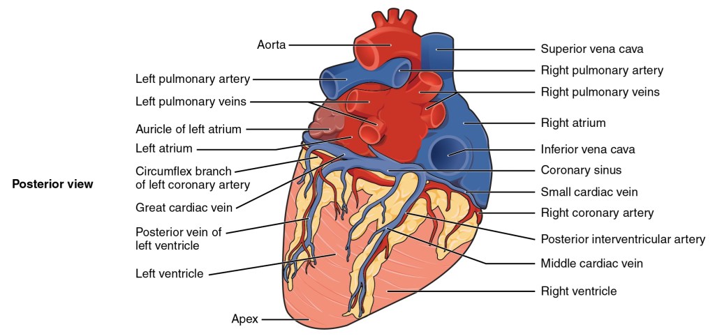 - Posterior (back): Forms the base, mostly the left atrium.